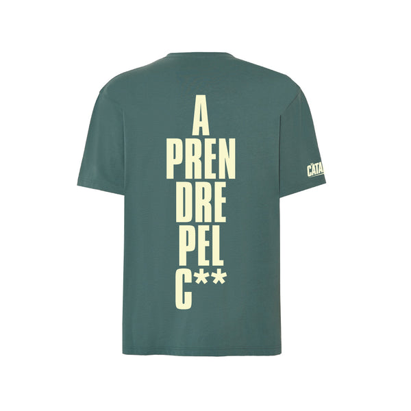 La samarreta és de color verd (tè) amb el logotip de Paracaigudistes en color crema a la part de davant, el logotip d'Els Catarres de color crema a la màniga dreta i la frase "A PENDRE PEL C**" de color crema darrera.
